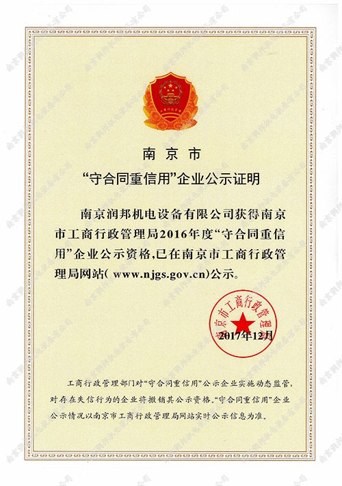 2016年市級(jí)守合同重信用企業(yè)