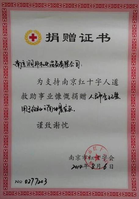 南京潤邦機電設備有限公司為魯?shù)闉膮^(qū)捐款1萬元 2014-08-07