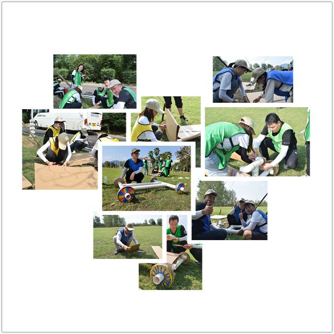 此次活動打破以往的常規(guī)培訓項目,開展主題拓展訓練—F1賽車主題活動,分組進行,通過參加環(huán)游世界杯挑戰(zhàn)賽贏取道具和積分,購買賽車零件,打造屬于自己的賽車。活動首先由歡快的“好、很好、非常好、耶”、“找大王”等破冰活動拉開序幕,大家迅速的融入團隊,建立信任。緊接著在拓展教練的指導下大家被分成了三組,各組確定隊長后經過一番頭腦風暴,設計好隊名、LOGO、口號及隊形并逐一精彩亮相。